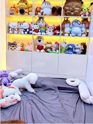 Money có phòng ngủ riêng, được thiết kế và trang trí xung quanh nhiều thú nhồi bông, đồ chơi của cún. Ngắm nhìn căn phòng này, chắc chắn không ít người phải thốt lên ngỡ ngàng, rằng Money sung sướng quá, hay… ôi sao mà chú cún này happy quá vậy…