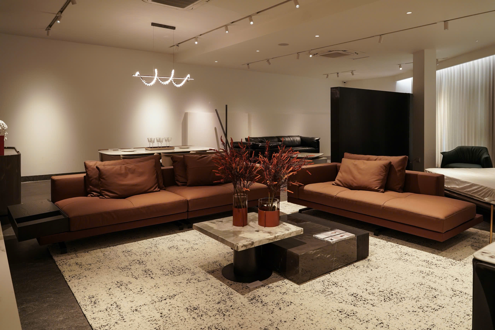 Showroom được Steven thiết kế như một không gian sống động và có cảm xúc. Từ khu vực Living, Dining, Bedroom cho đến Lifestyle Corner, mọi chi tiết đều được curated để khách bước vào có thể hình dung ngay phong cách sống họ đang hướng tới. Ba mặt thoáng đón ánh sáng tự nhiên tạo nên cảm giác mở, trong trẻo – thứ ánh sáng mà Steven chia sẻ “giúp tôi nhìn rõ hành trình mình đã đi qua, và thấy tương lai sáng hơn một chút mỗi ngày”.