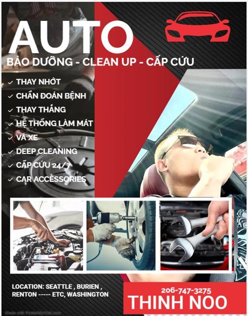 Không chỉ dừng lại ở vai trò một kỹ thuật viên, Phu Nguyen dần xây dựng thương hiệu dịch vụ riêng mang tên THINH NOO. Dịch vụ tập trung vào bảo dưỡng, chẩn đoán kỹ thuật, làm sạch – chăm sóc xe chuyên sâu và hỗ trợ khẩn cấp 24/7 cho các dòng xe châu Âu và châu Á tại khu vực Seattle và vùng lân cận.