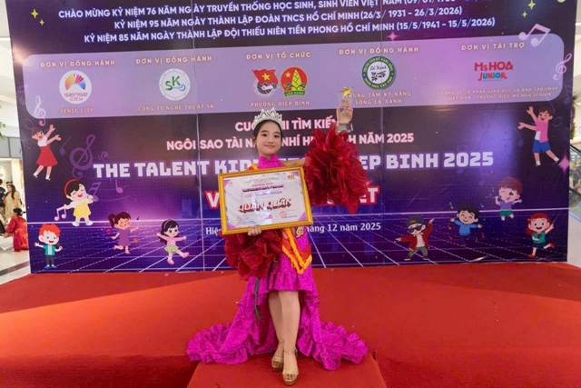 The Talent Kid’s Star Hiệp Bình 2025 – cuộc thi tìm kiếm tài năng nhí Hiệp Bình năm 2025 đã khép lại với nhiều dấu ấn đẹp, trong đó nổi bật nhất là chiến thắng thuyết phục của sao nhí Phan Ngọc Anh Thư, gương mặt xuất sắc đăng quang ngôi vị Quán quân. Đây không chỉ là thành quả của một phần thi ấn tượng, mà còn là kết tinh của quá trình rèn luyện nghiêm túc, niềm đam mê nghệ thuật bền bỉ và sự đồng hành tận tâm từ gia đình, nhà trường.